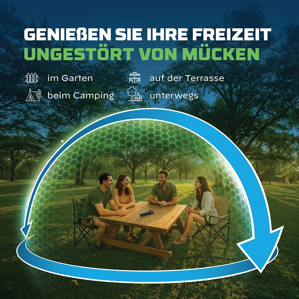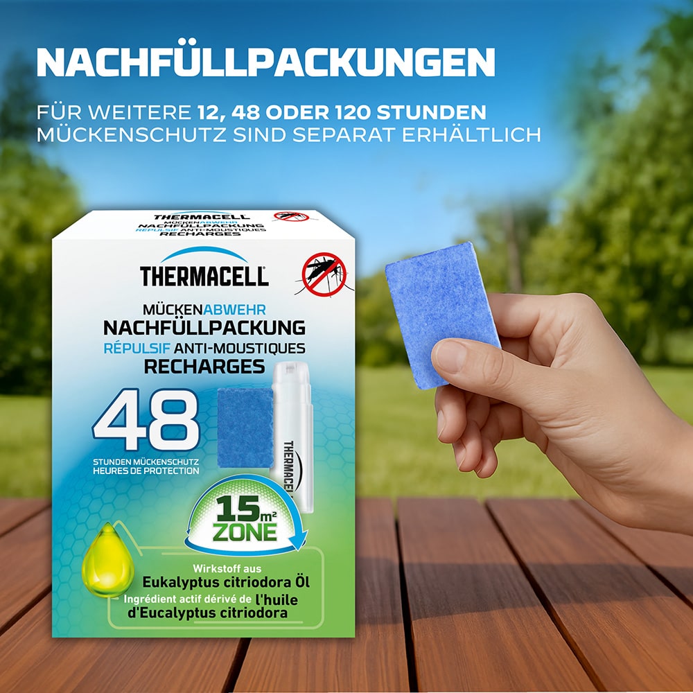 Bei Gartenarbeit, Wanderungen, Festivals und anderen Outdoor-Aktivitäten sind Mücken oftmals lästige Begleiter. Mit dem Proactive Handgerät sind Sie jedoch ganz ohne Spray oder Lotion auf der Haut geschützt unterwegs. Die bis zu 15 m² große Mückenschutz-Zone bietet eine wirksame Mückenabwehr – mobil, kompakt und stromunabhängig. Der pflanzenbasierte Wirkstoff auf Basis von Zitronen-Eukalyptus-Öl erzeugt dabei einen leichten, angenehmen Duft.