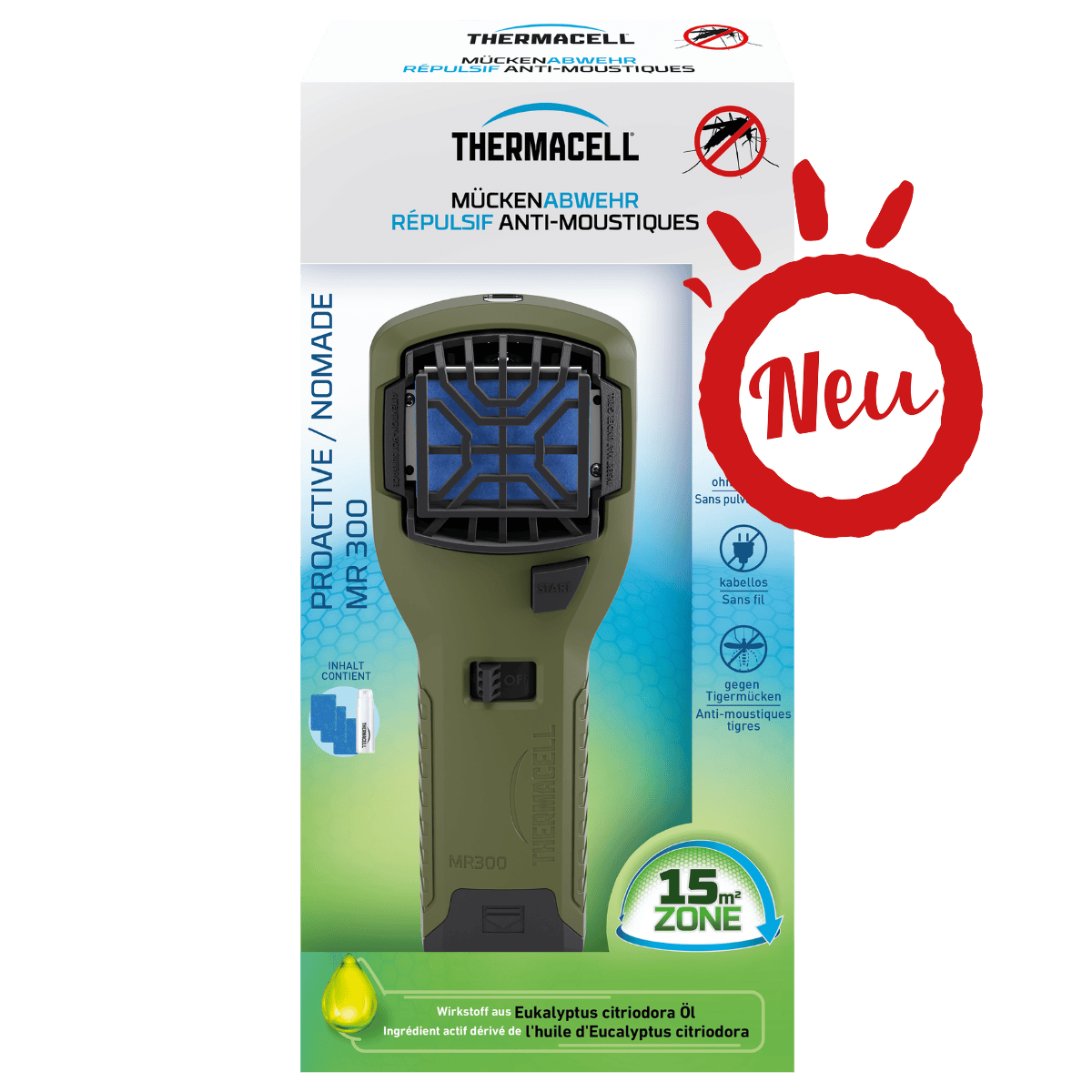 Das Thermacell Handgerät vertreibt Mücken (inkl. der Asiatischen Tigermücke), indem es eine Mückenschutz-Zone von 15 m² erzeugt. Das Handgerät funktioniert ohne Strom und kann bei Bedarf jederzeit an- und ausgeschaltet werden. Im Lieferumfang sind Wirkstoffplättchen und eine Gaskartusche für 12 Stunden mückenfreie Zeit enthalten. Die neuen Wirkstoffplättchen auf Basis von Citrodiol® enthalten einen aus Eukalyptus‑citriodora‑Öl gewonnenen Wirkstoff, der eine kontinuierliche Schutzzone bildet und Mücken sowie Tigermücken wirksam fernhält.