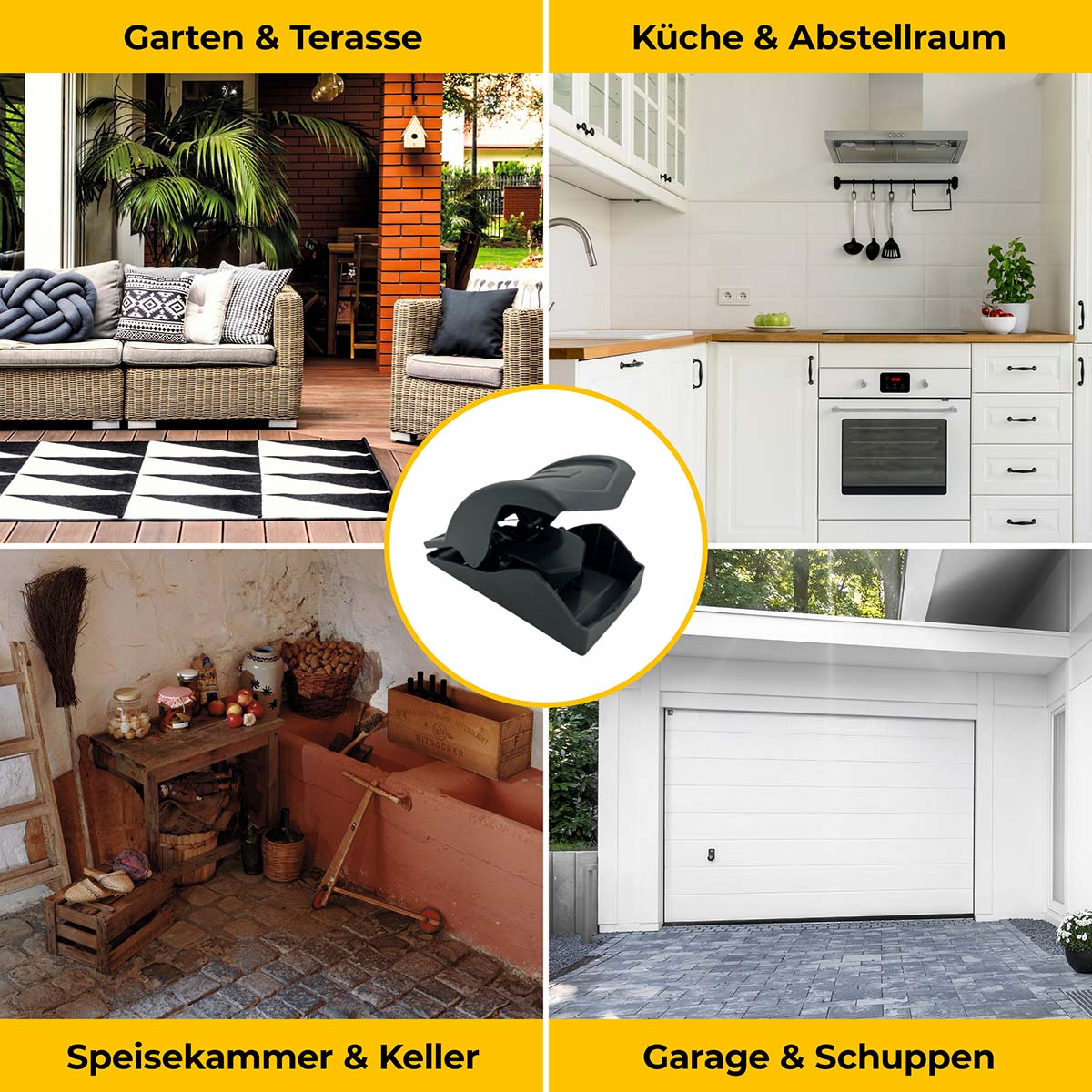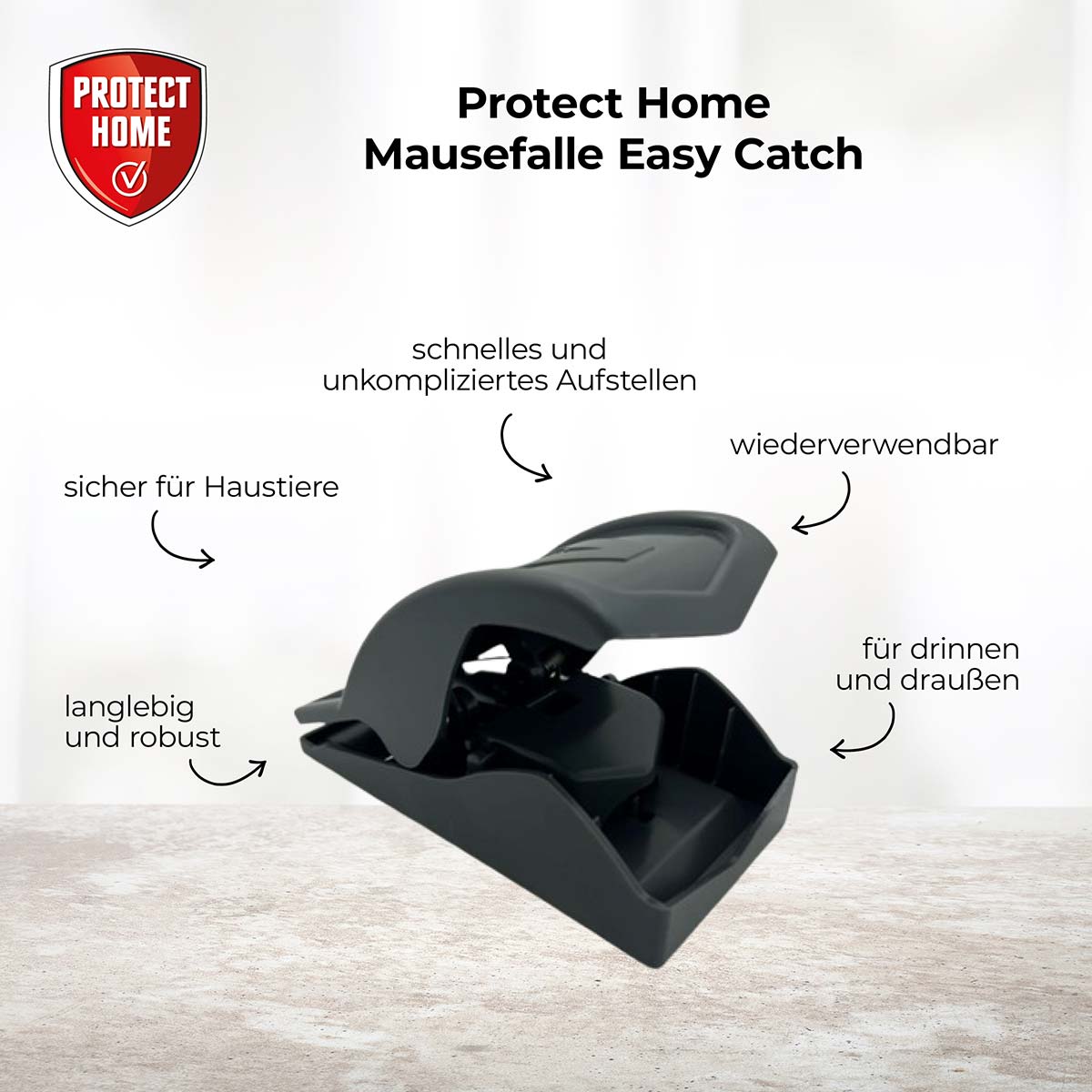 Die Protect Home Mausefallen Easy Catch sind einfach in der Anwendung und sehr effektiv zum Fangen von Mäusen. Die Mausefallen Easy Catch sind aus stabilem und witterungsbeständigem Kunststoff gefertigt. Die Fallen eignen sie sich sowohl für Anwendung im Innenbereich als auch eine Platzierung in Keller, Schuppen oder allgemein im Außenbereich.