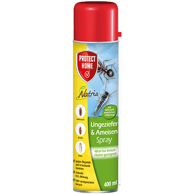Ungeziefer & Ameisenspray gehört zur Natria-Linie, deren Produkte auf Basis nachwachsender Rohstoffe hergestellt werden. Das benutzerfreundliche Aerosol überzeugt durch seine sehr gute Wirkung gegen kriechende Insekten wie Ameisen, Silberfischchen, Kellerasseln, Wanzen, Schaben im und am Haus. Auch viele fliegende Insekten, wie Mücken, Fliegen, Motten und auch Wespen, werden von der Wirkung des Mittels erfasst. Die Kombination aus unmittelbar eintretender K.O.-Wirkung und lang anhaltender Barriere-Wirkung macht das Ungeziefer & Ameisenspray zu einer effektiven und nachhaltigen Lösung gegen nerviges Ungeziefer.