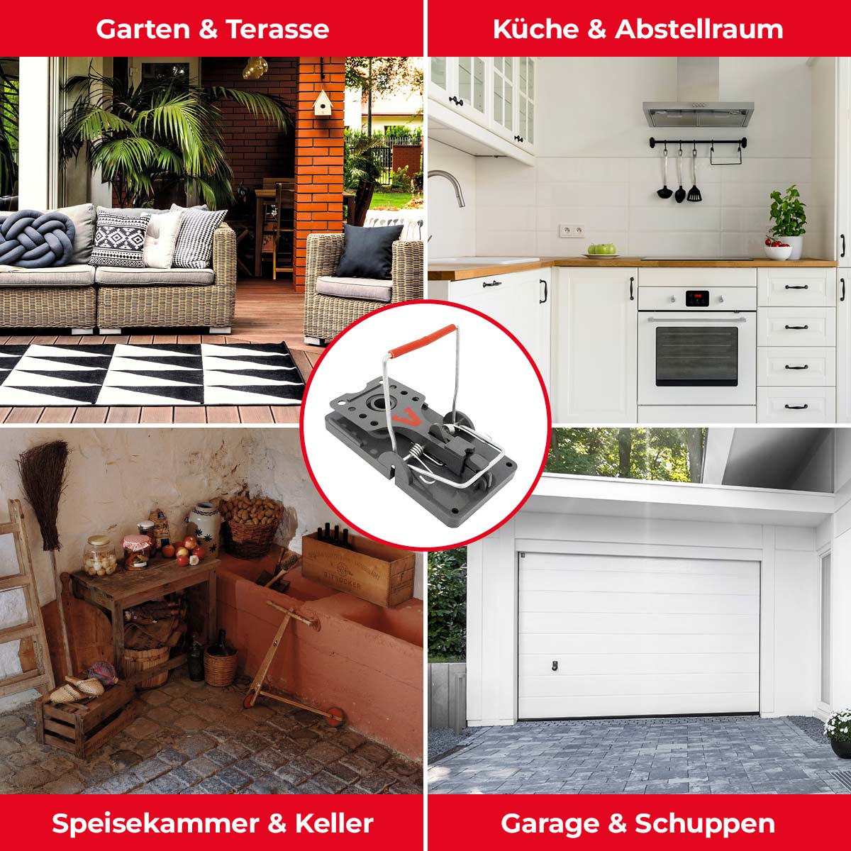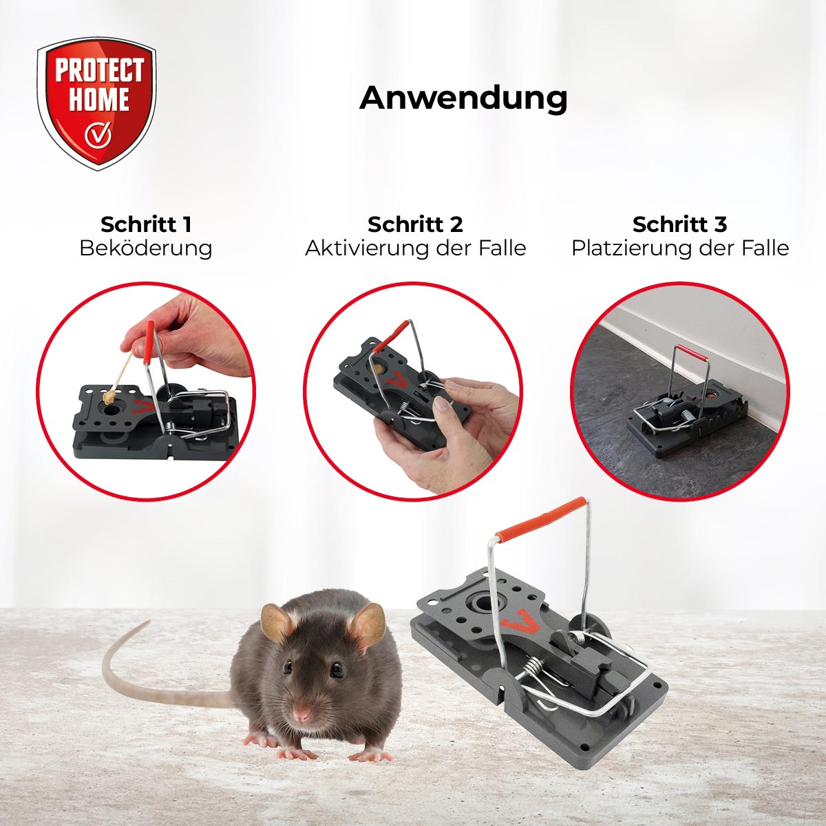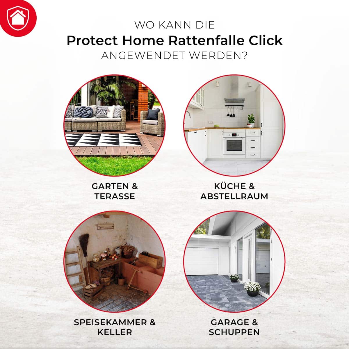 Die Protect Home Rattenfalle Click ist eine innovative und effektive Rattenfalle mit ausgeklügelter Präzisionsschlag Technologie. Sie eignet sich ideal zur giftlosen Bekämpfung von Rattenbefall im und am Haus. Sie kann unter anderem in Waschküchen, Kellern, auf Dachböden oder im Außenbereich angewendet werden. Die Ratten-Falle zeichnet sich durch eine enorme Schlagkraft und eine gleichzeitig einfache Anwendung aus. Mit nur einem Handgriff ist die Falle scharfgestellt.