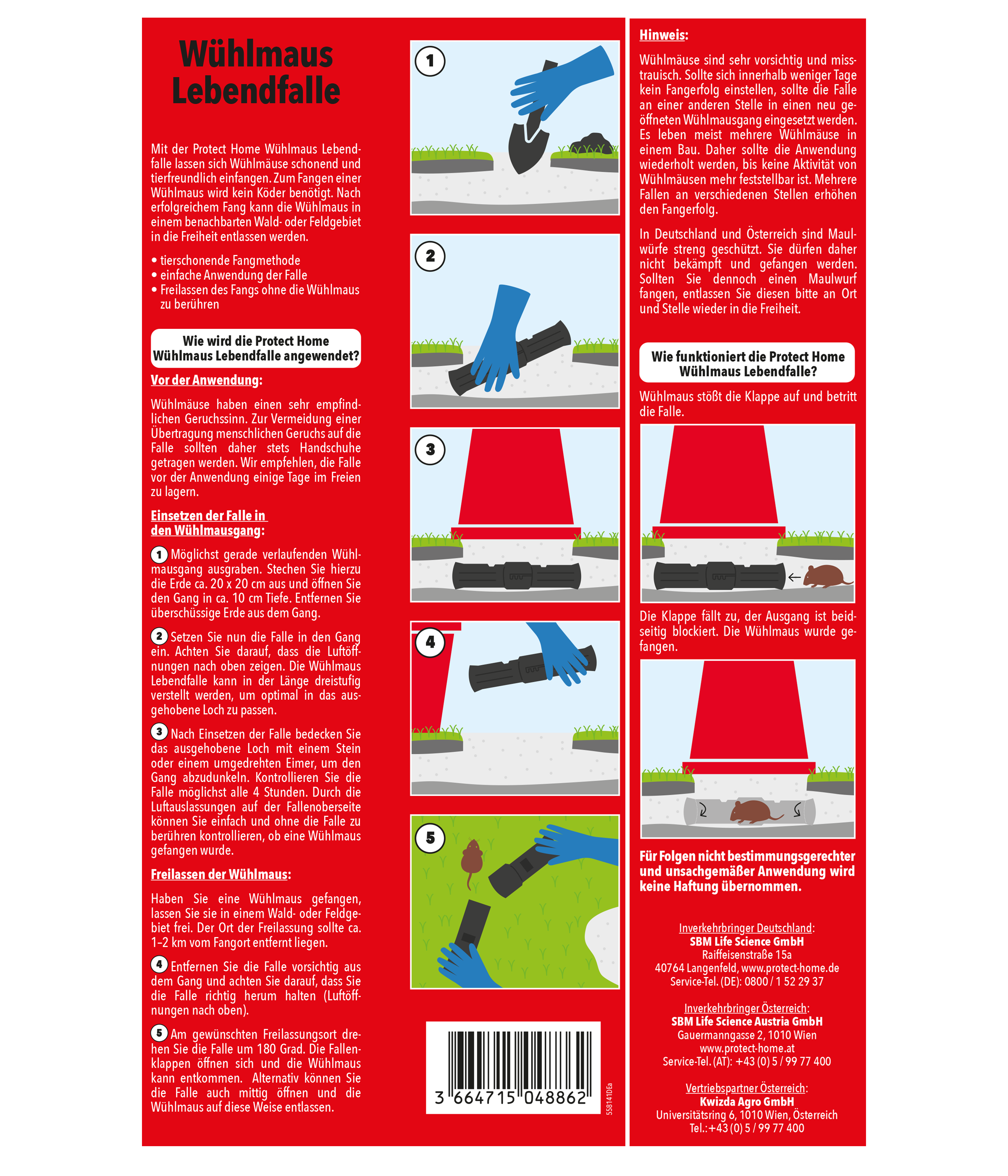 Mit der Protect Home Wühlmaus Lebendfalle lassen sich einzelne Wühlmäuse schonend und tierfreundlich einfangen.