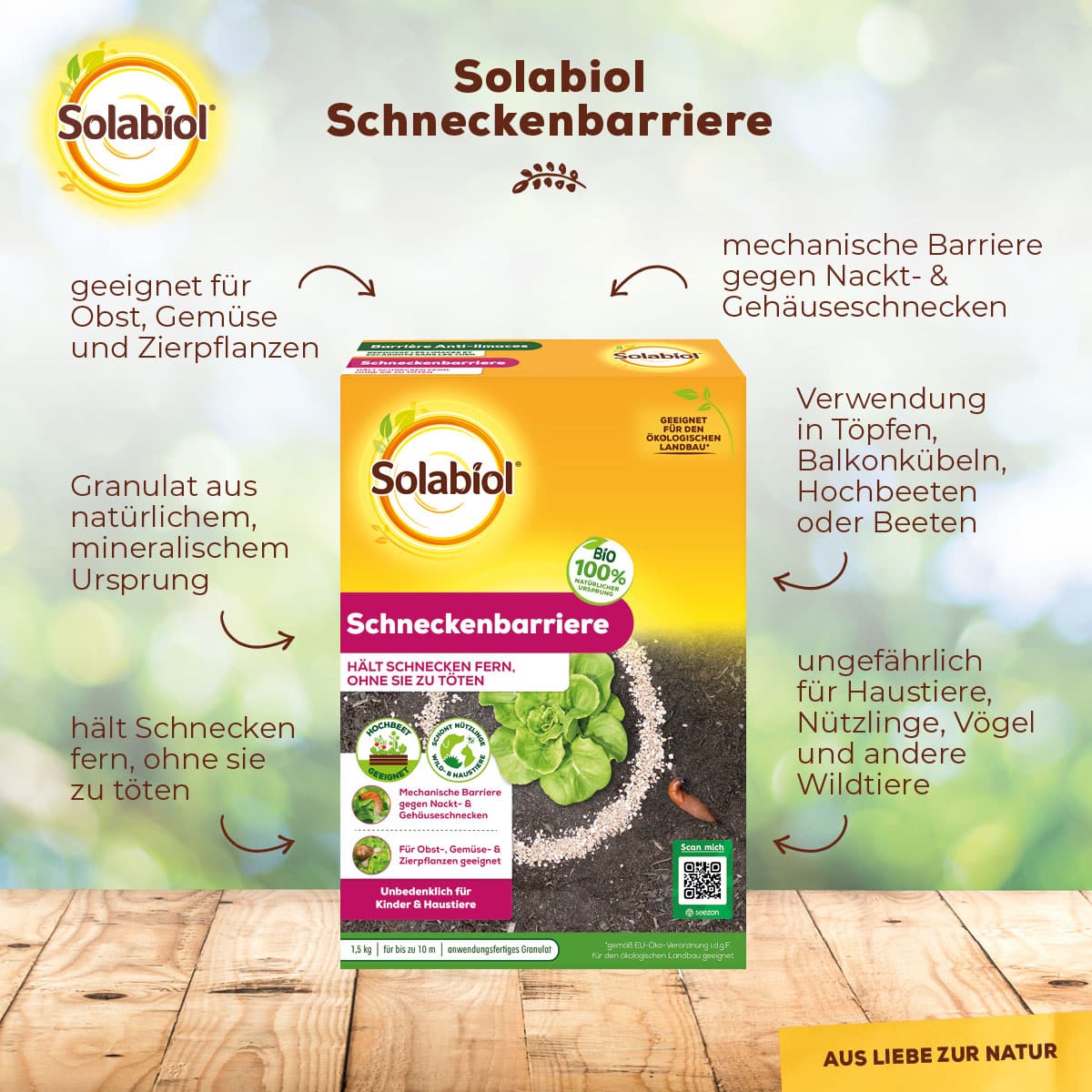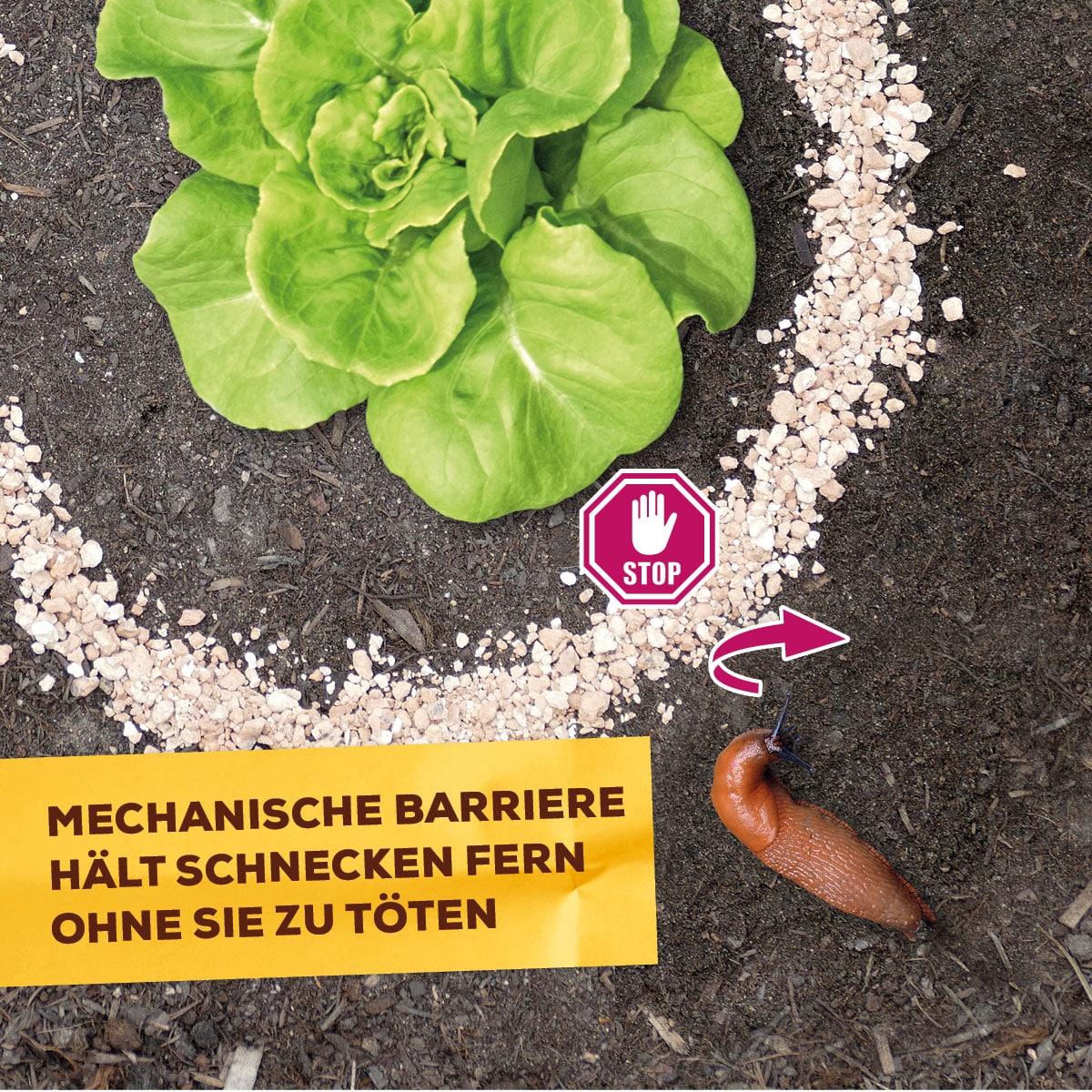 Mit dem natürliche vorkommenden, mineralischen Tongranulat wird um Nutz- und Zierpflanzen eine Barriere zur Abwehr von Schnecken gestreut. Die Schnecken überqueren die Barriere nicht, da die Berührung mit dem Produkt für sie unangenehm ist. Das Produkt kann in den Boden eingeharkt werden, sobald die Barriere nicht mehr erforderlich ist.